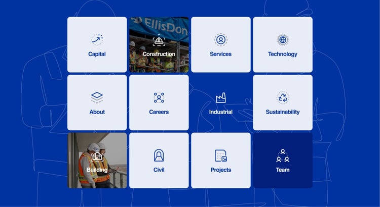 As part of the brand refresh, we developed a custom iconography system tailored specifically to EllisDon’s identity. The icons needed to feel unmistakably theirs—clear, modern, and rooted in the simplicity of the new brand language. Designed for immediate recognition, the system helps users quickly understand EllisDon’s service categories and capabilities, while bringing consistency and cohesion to their digital presence across the entire site.