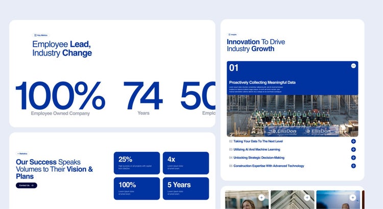 We collaborated closely with the EllisDon team to translate their refreshed brand, voice, and tone into a digital experience that felt modern and aligned with their growth. Together, we refined the brand into a more minimal, clear, and straightforward expression—moving away from the overly dark, heavy visuals that no longer reflected a mature, successful company working with high-caliber clientele & projects.