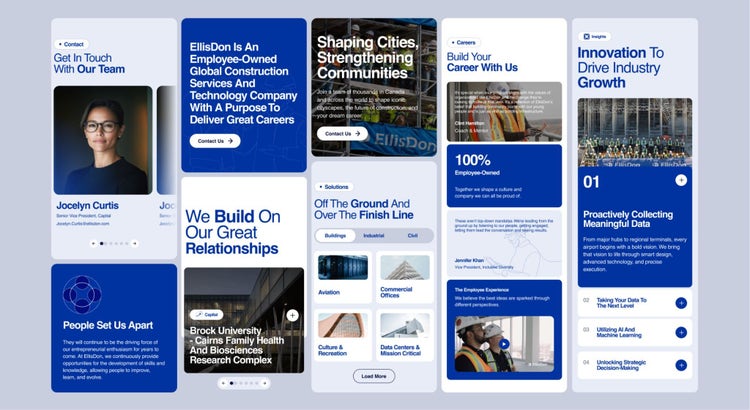 We built a comprehensive communication strategy that defined EllisDon’s purpose, aligned their channel ecosystem, and mapped how each audience moves through their content. What began as a website redesign evolved into a unified strategic framework—strengthening brand clarity, elevating consistency, and creating deeper connection across